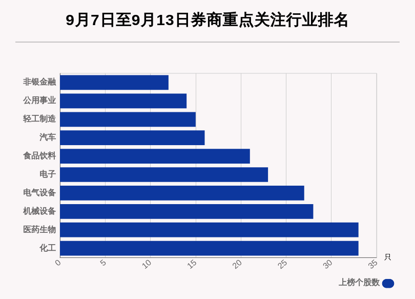 从券商对行业的关注度来看,券商关注个股数居前的行业分别是化工、医药生物、机械设备。