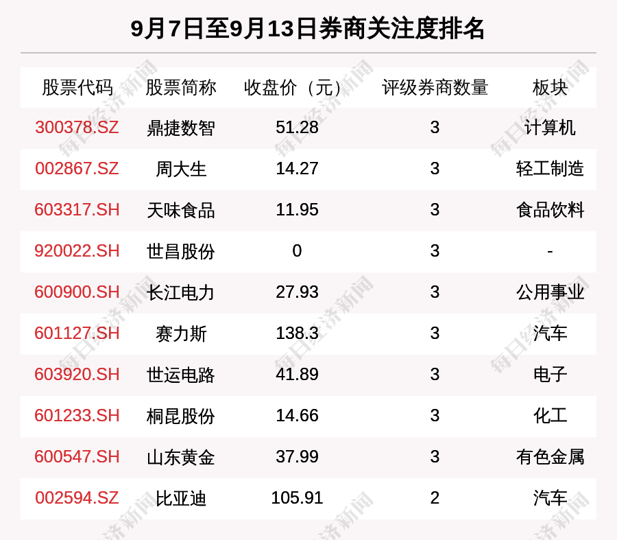 从券商对个股的关注程度来看,有45只个股获得多家券商关注,券商关注数量排名居前的个股是鼎捷数智(300378.SZ)、(002867.SZ)、天味食品(603317.SH)。